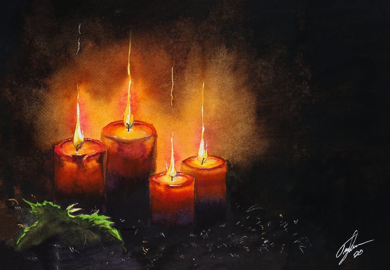 Set of 12 5x7 greeting cards with the 4 designs shown (3 of each) with envelopes. Scroll down for the rest of the designs.