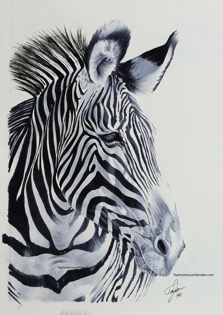 An original drawing in cool grays of a Zebra.
