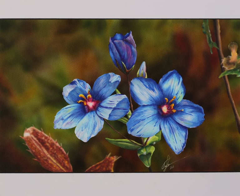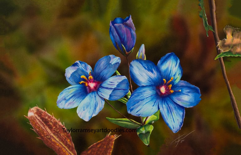 ****SOLD****Blue flowers in the sun in marker and airbrush.