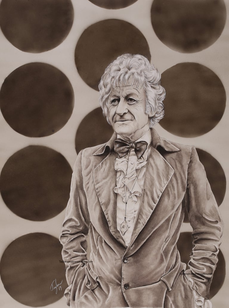 Original black & white marker portrait of the Third Doctor-Jon Pertwee.